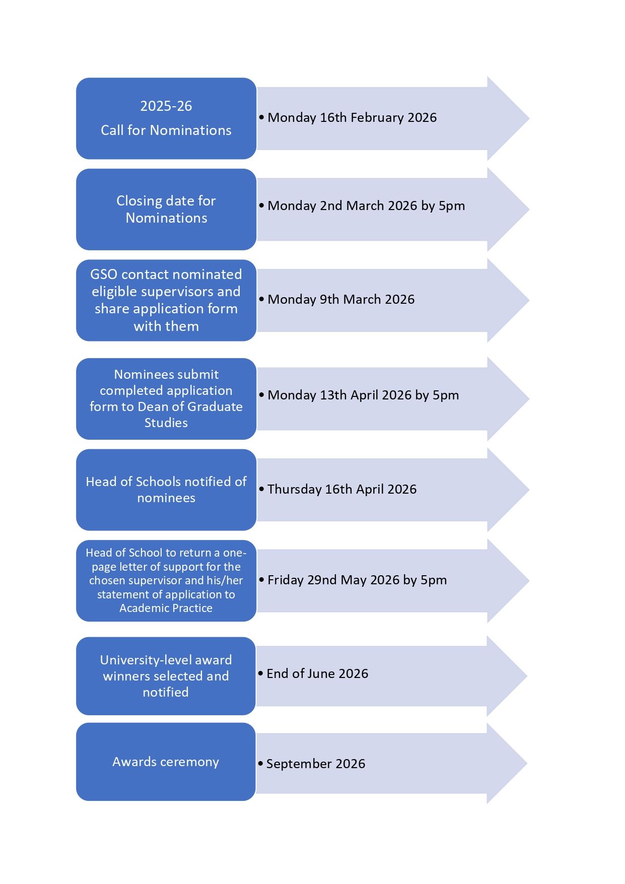 At least one nomination must be received and supervisors cannot self-nominate for the award. The deadline to nominate a supervisor is Monday, 2nd March 2026 at 5pm.